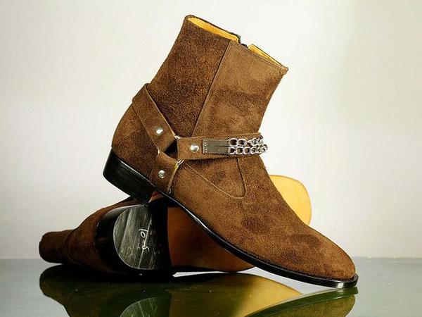 New Handmade Brown Colour Jodhpurs Pure Suede Buckle Strap Boots, Ankle High Boots Stylish Formal Boots For Men's