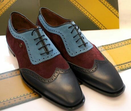 Mens Multi Color Wing Tip Handcrafted Leather Lace Up Customized Premium Shoes