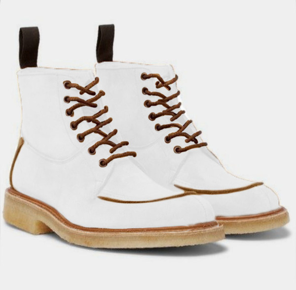 Handmade White Leather Crepe Sole Lace Up Festival Boot