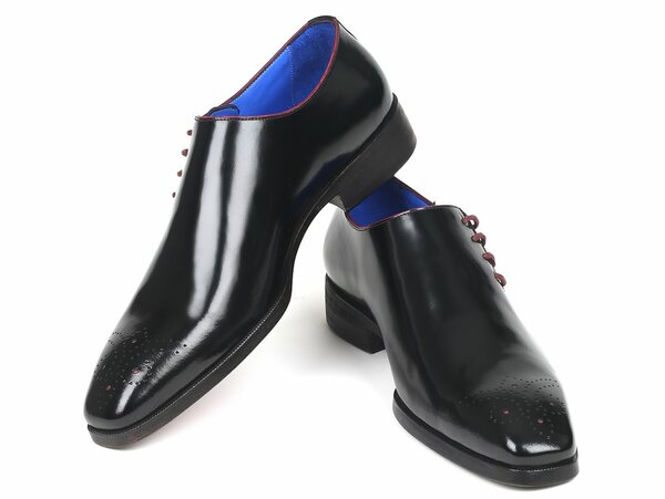 New Handmade Men's Side Lace Oxfords Black Polished Leather Shoes