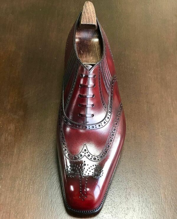 Mens Custom Made Red Color Wingtip Oxford Lace up Dress Shoes