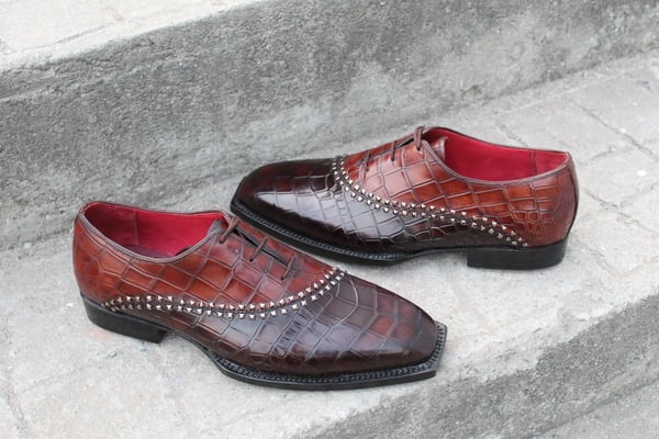 Luxury Handmade Mens Unique Brown Crocodile Texture Leather Alligator Dress Fashion Oxford Shoes