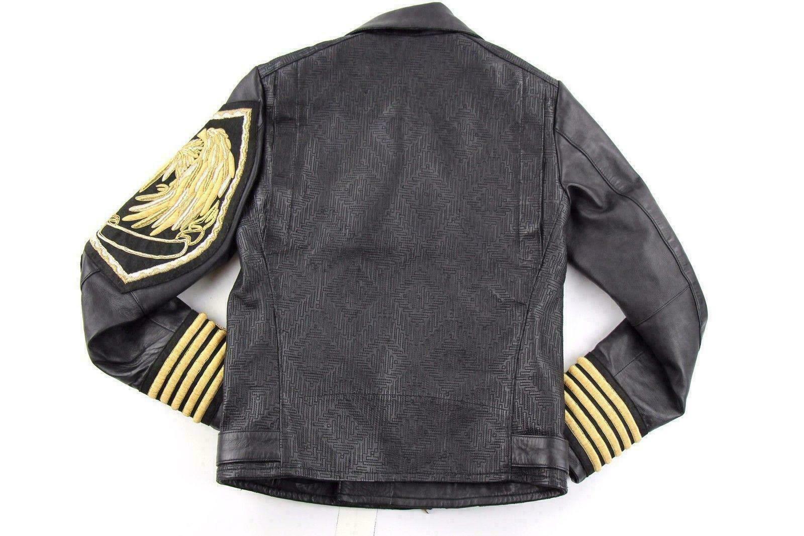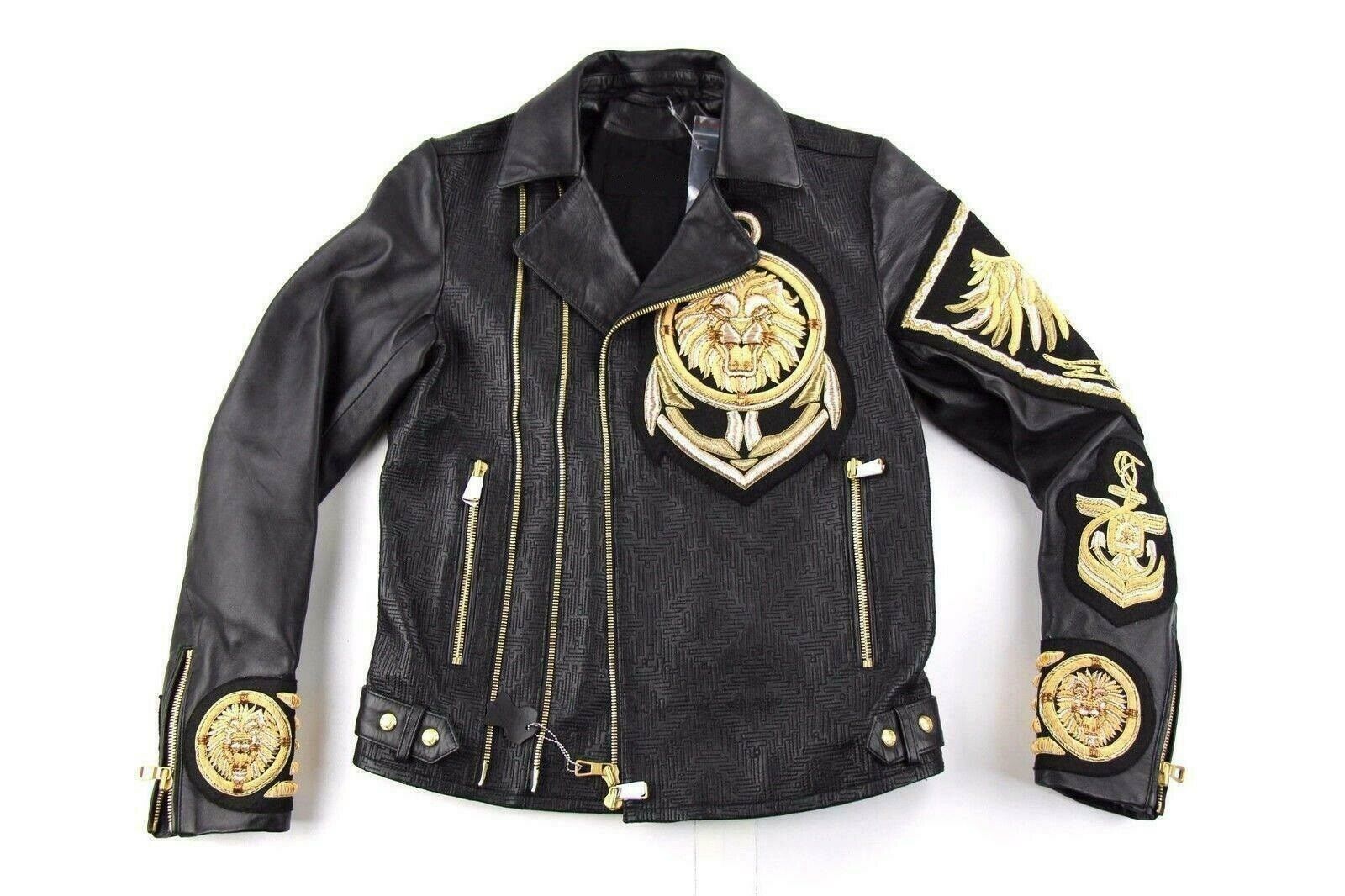 New Handmade Embroidery Patches Golden Black Brando Style Lion Leather Jacket