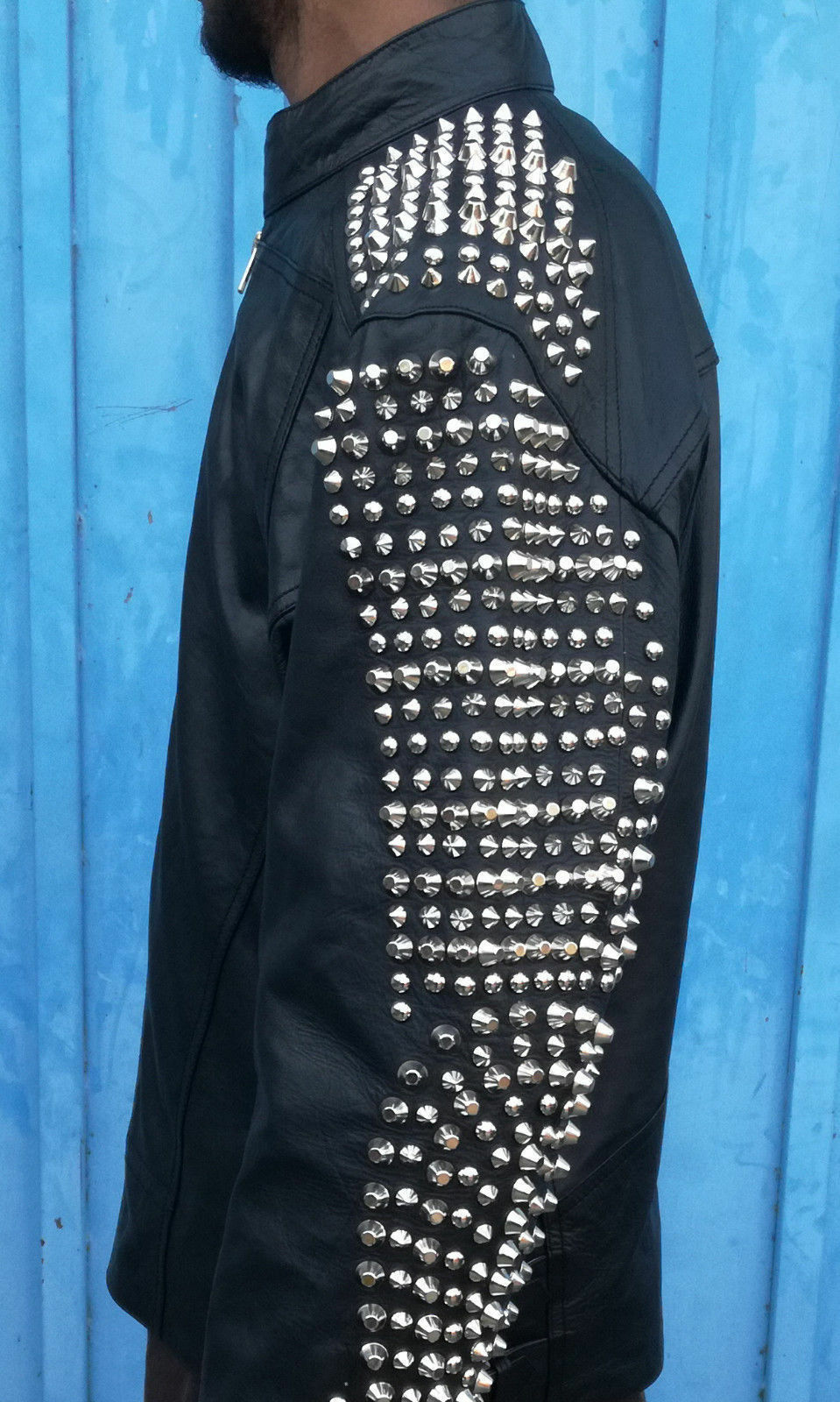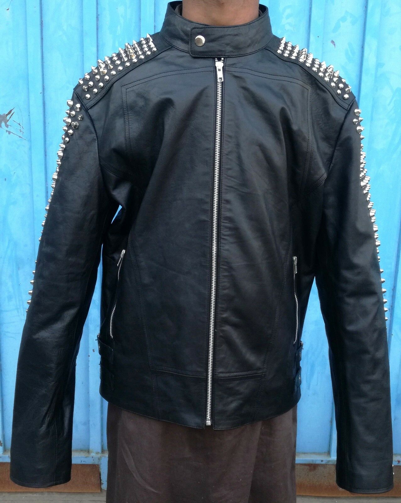 Men's New Stylish Custom Made Shoulder & Arm Studded Black Leather Jacket