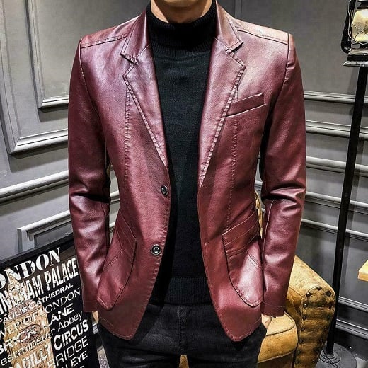 New Men's Stylish Handmade Maroon Leather Fashion Cowhide Leather Coat