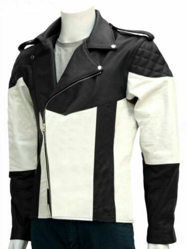 New Men's Custom made Black & White Leather Zipper Style Biker Leather Jackets