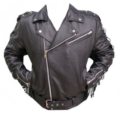 New Handmade Cowboy Men's Black Western Cow Leather Jacket Fringed/Chonchos