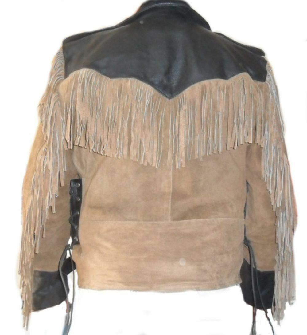 Men Suede Cowhide Leather Jacket Cow-boy Fringed Western Wear