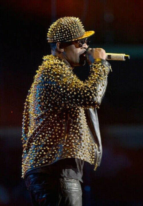 Handmade Men's Gold Spiked Studded Leather Jacket