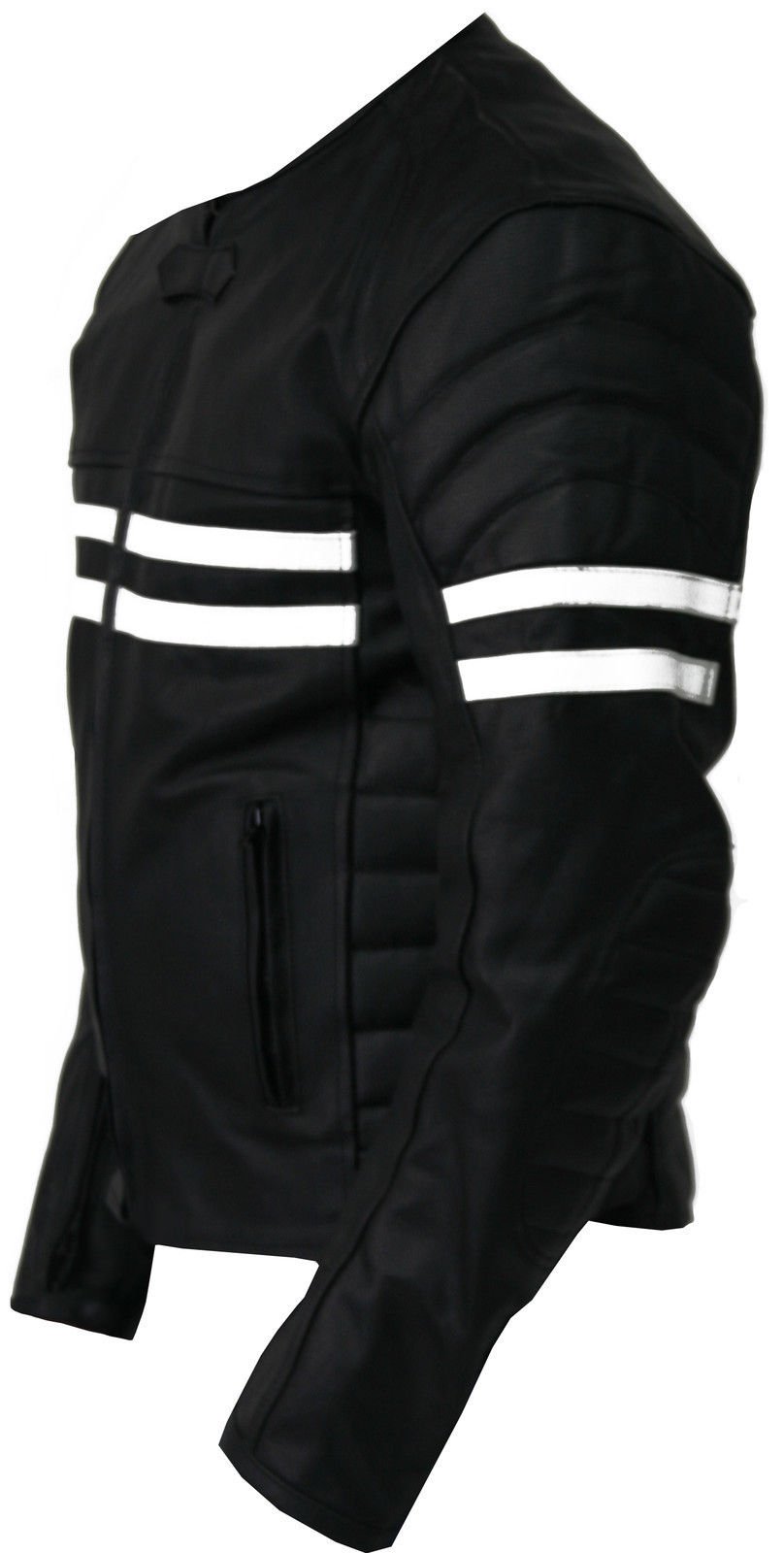 Handmade Mens Biker Striped Design Casual Leather Jacket