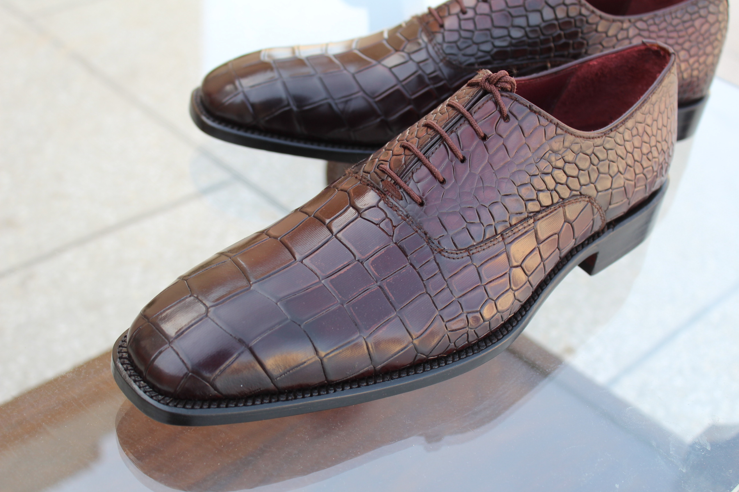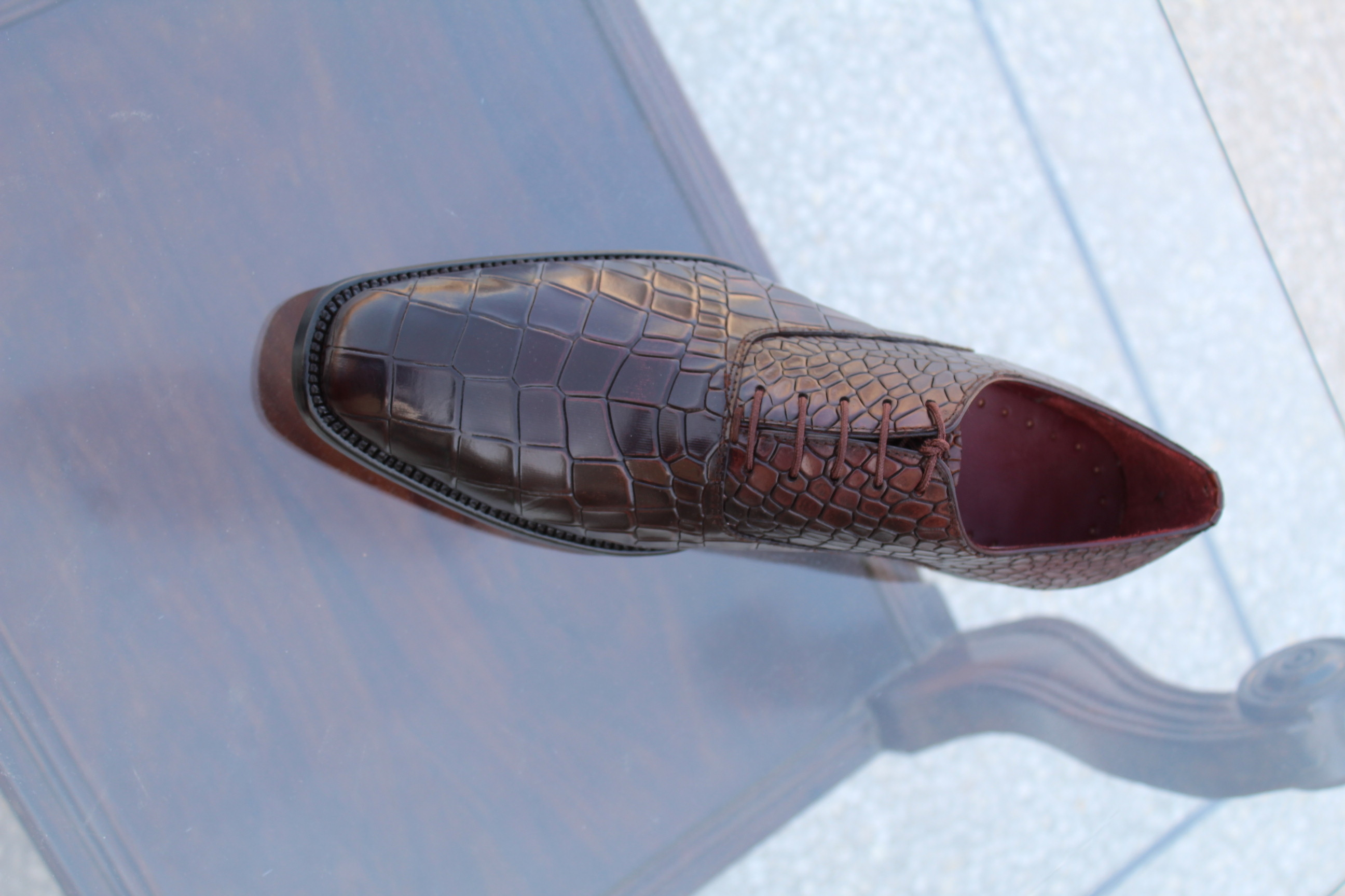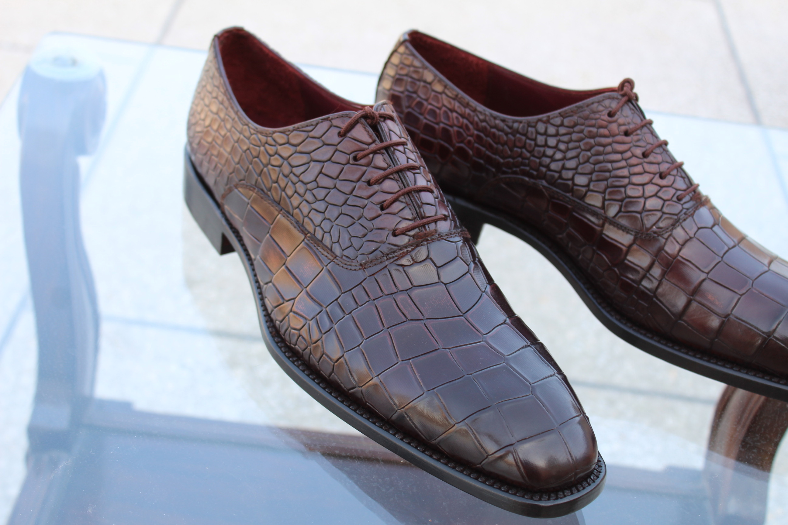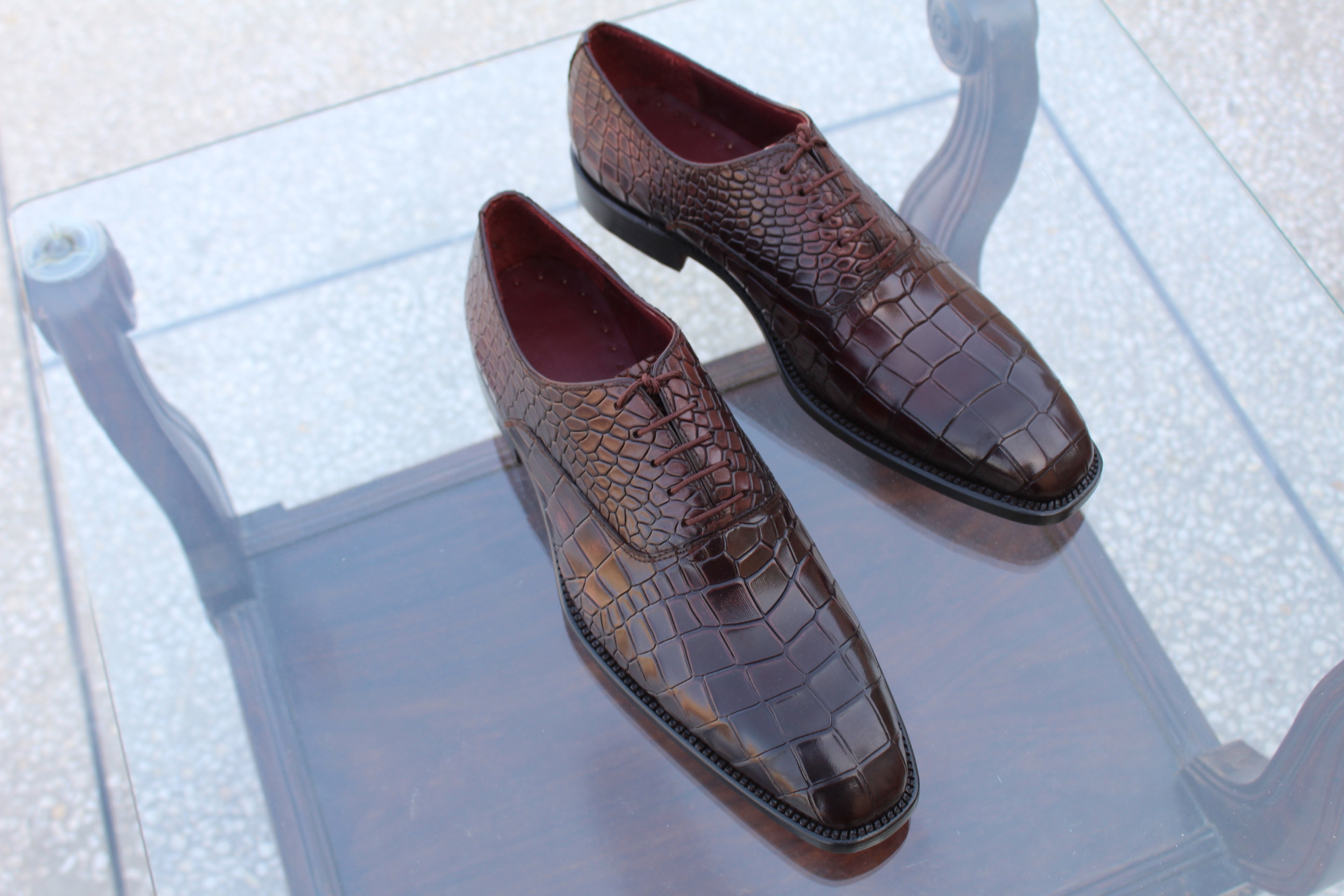 Crafted Leather Men's Shoes Dark Brown Exotic Crocodile Derby Oxford