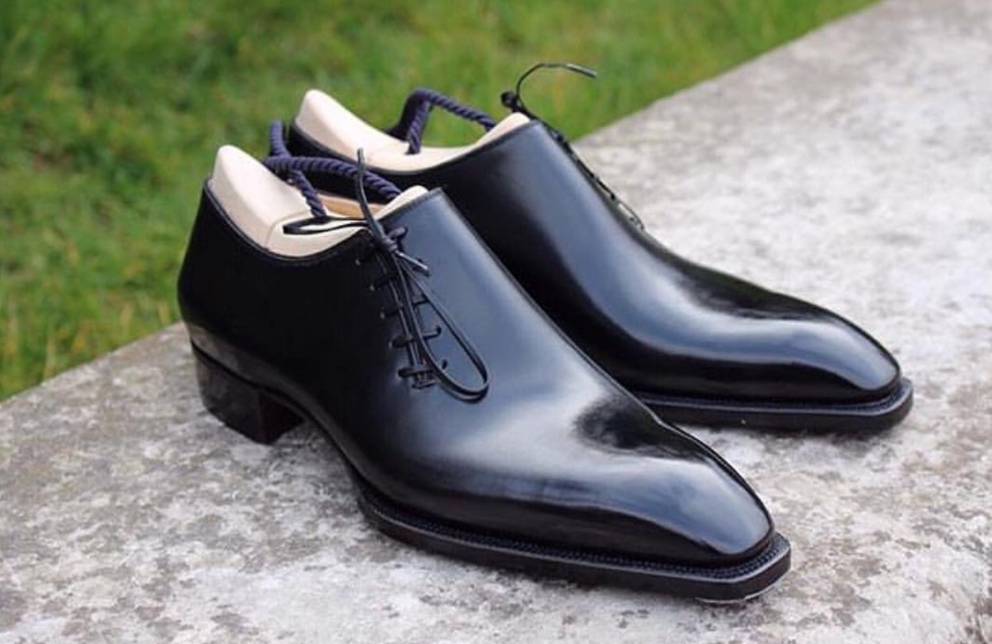 Handmade Men Oxford Leather Black Shoes Trendy Hand Panted Dress Fashion Shoes