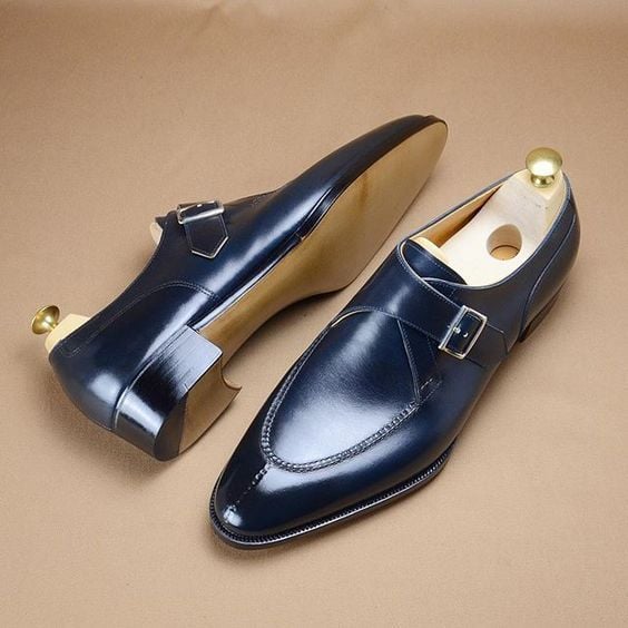 Handmade Mens Blue formal monk Shoes, Men Blue dress shoes, Men leather shoes