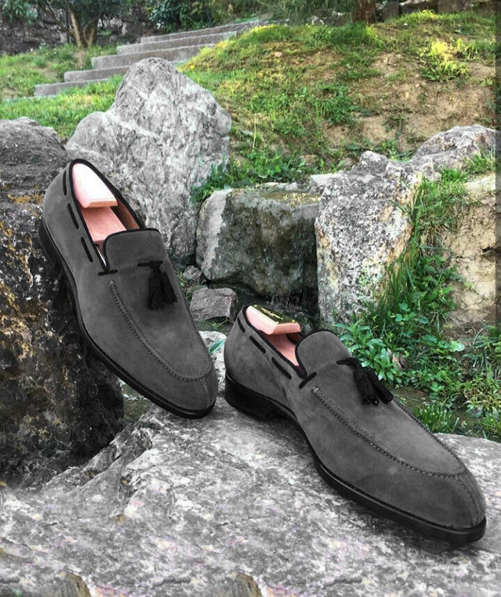 Split Toe Tassel Loafers Gray Tone Vintage Fashion Suede Leather PartyWear Shoes