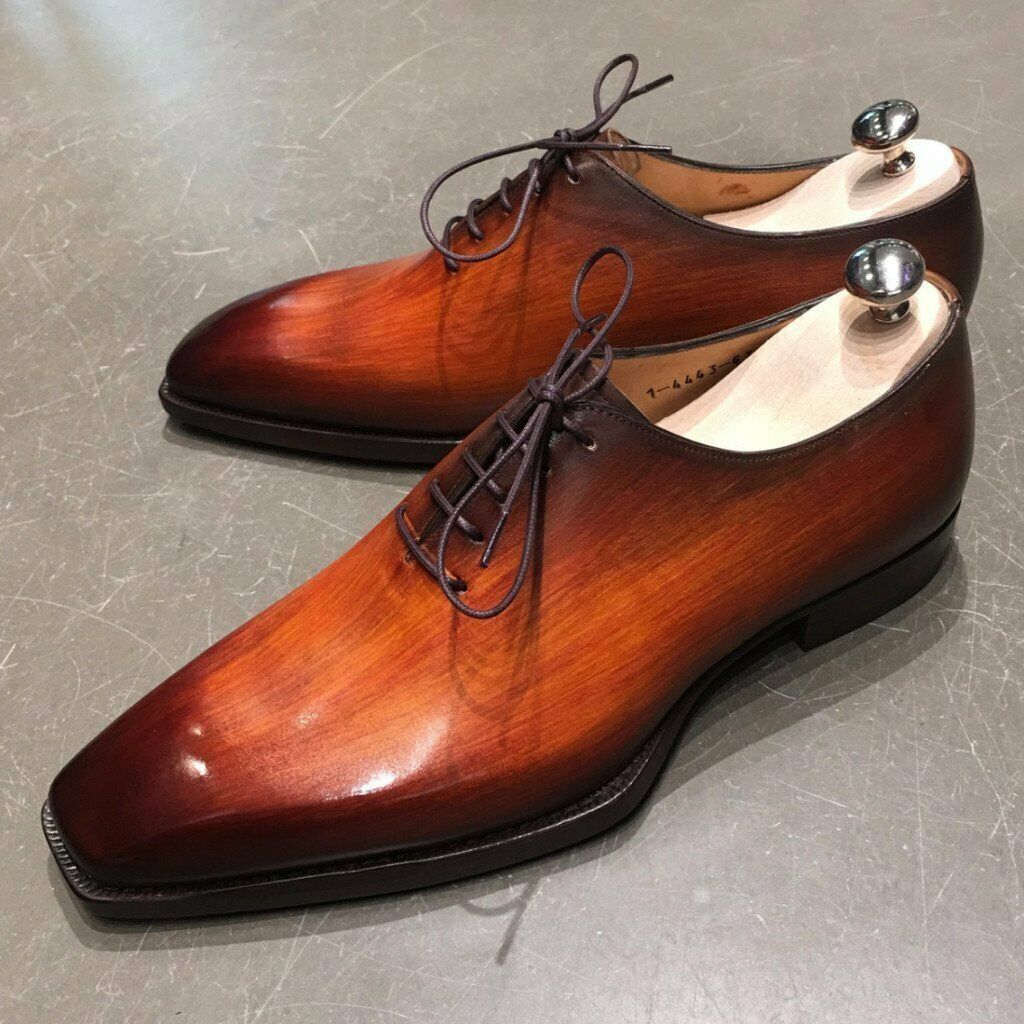 Men’s Oxford Cognac Patina Whole Cut Premium Quality Lace up Leather Shoes