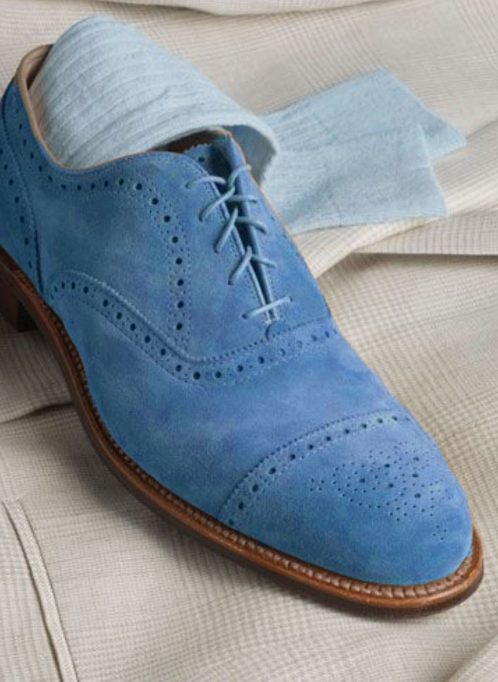 Handmade Blue Suede Cap Toe Lace Up Formal Shoes For Men