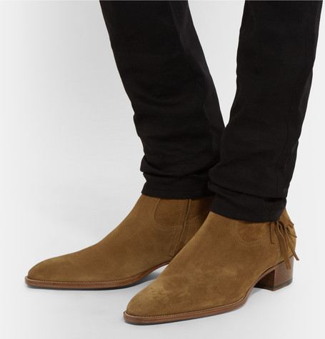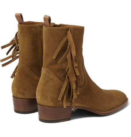 Hand men tan color ankle high fringed ankle high suede leather boots, Ankle boot