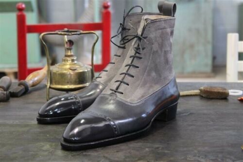Handmade Pure Gray Suede and Black Leather Boots for Men, Men Formal Boots, Boots for Men