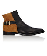 Handmade Premium Black Leather & Tan Suede Ankle High Madrid Strap Boots
