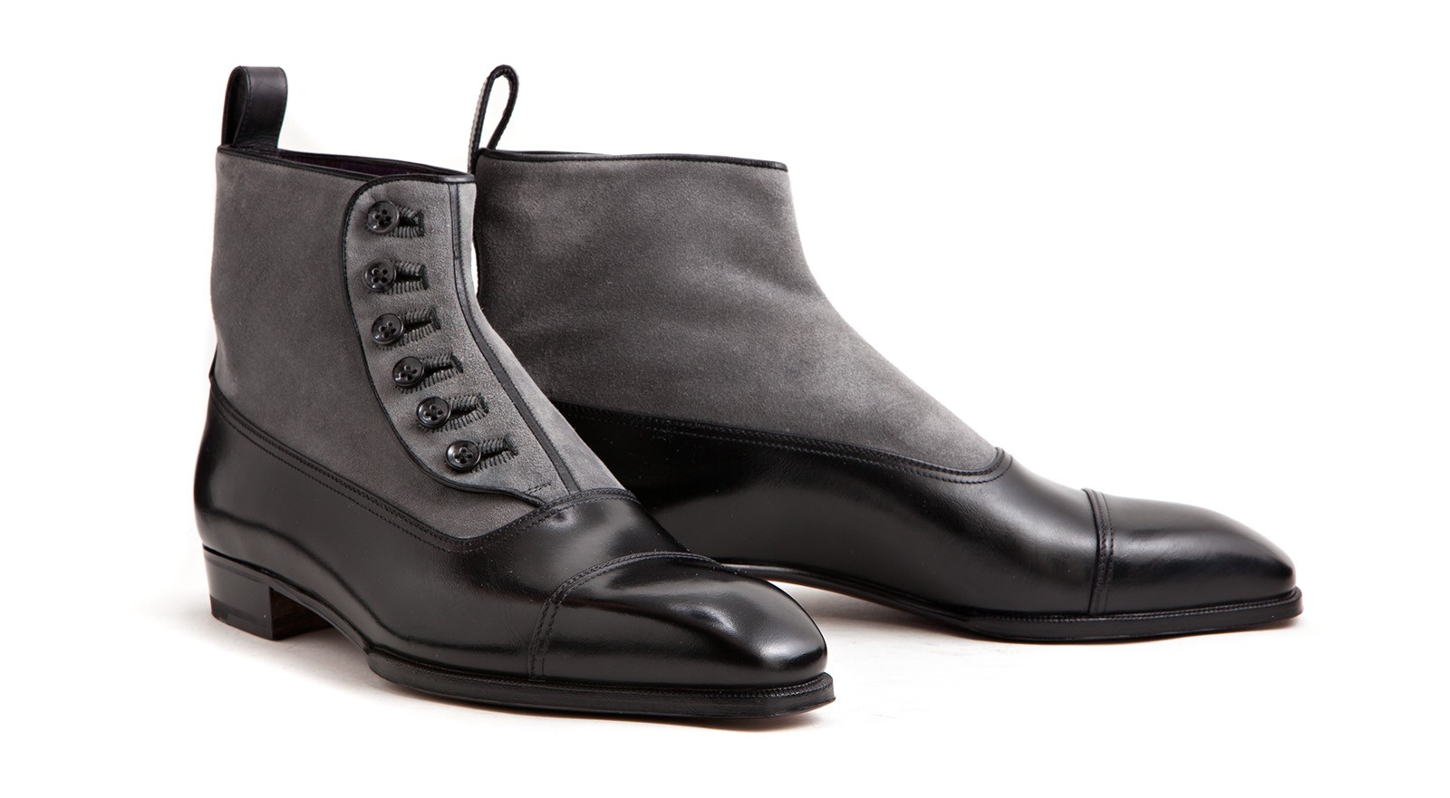 Handmade Formal Men Button Boot, Men Gray and Black Ankle Cap Toe Boot