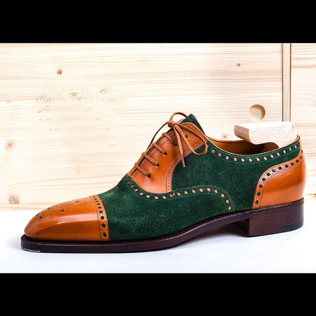 Men's Tan Green Lace Up Leather Suede Stylish Shoes Men Dress Formal Cap Toe Brogue Shoes