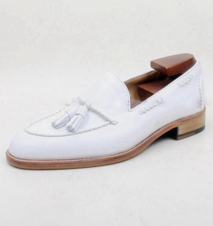 Handmade Genuine Leather New Year Best Gift White Leather Tassels Moccasin Shoes For Men