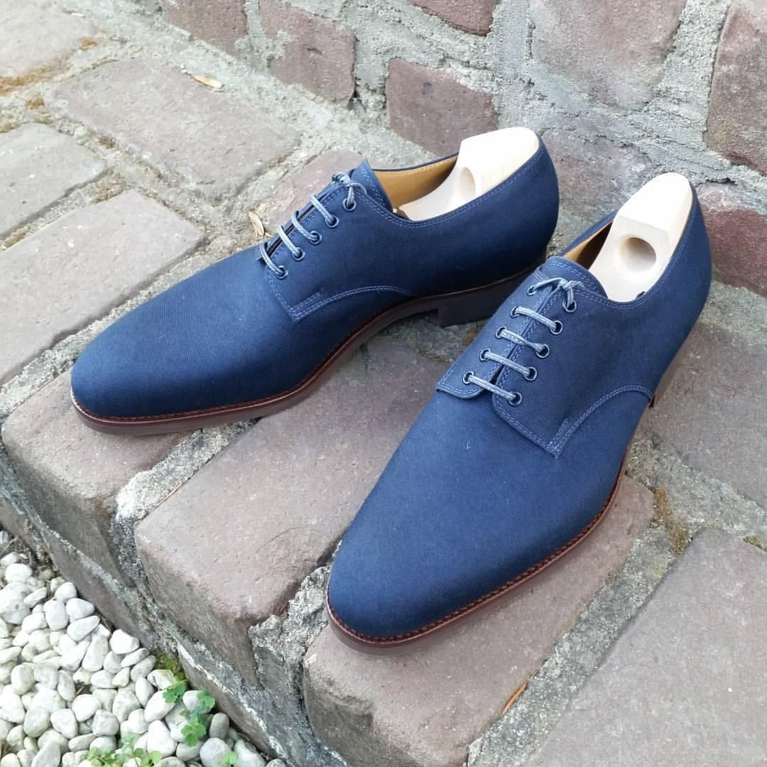 Handmade Blue Shoes , Men's New Brogue Suede Lace Up Dress Shoes