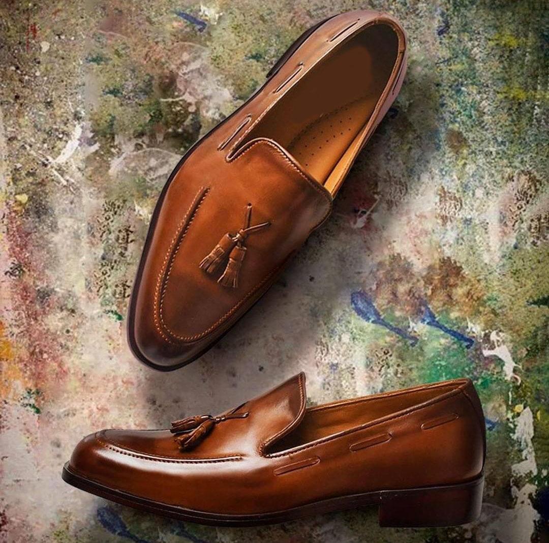 Stylish Fashion Shoes , Loafer Tasseled Handmade Brown Leather Shoes