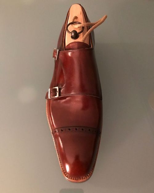 Men's Handmade Brown Double Monk Leather Sole Dress Shoes