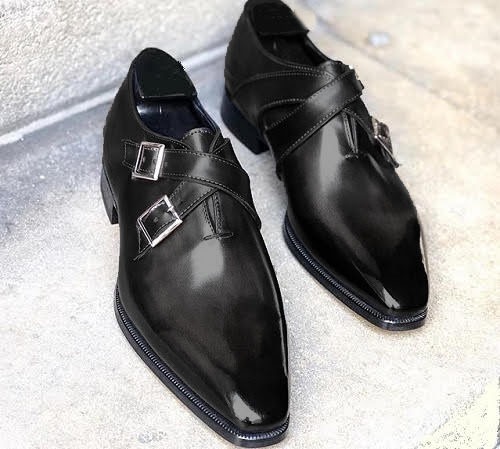 Classic Men's Hand Stitch Double Monk Strap Leather Shoes, Christmas Black Shoes