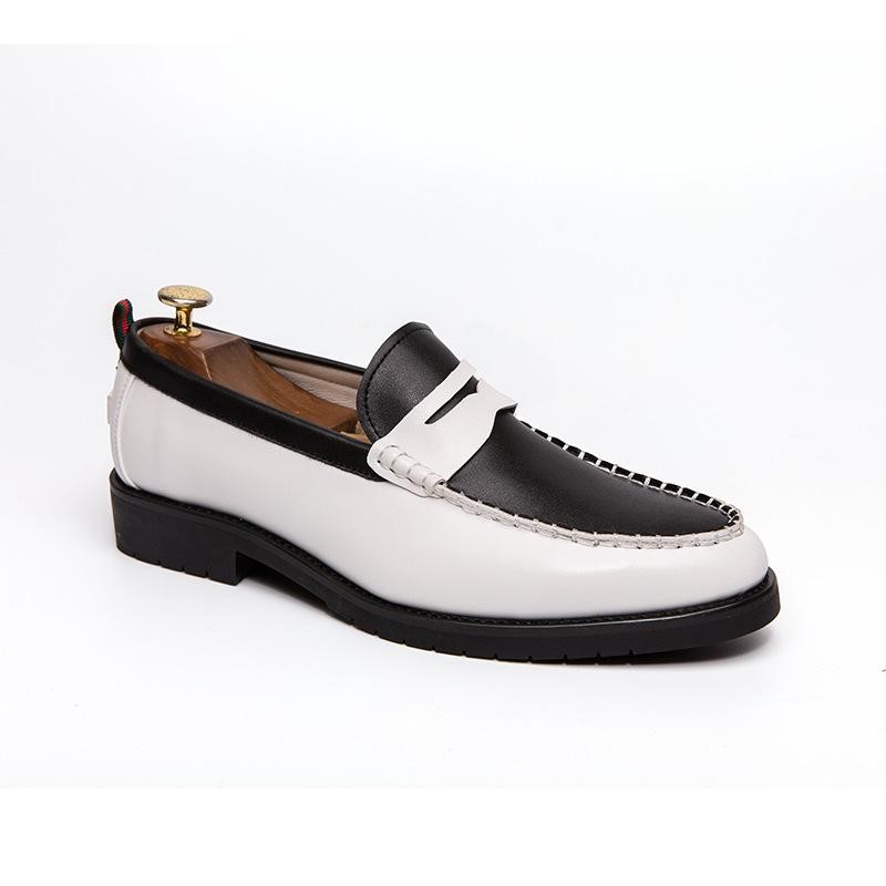 Handmade Men's Adorable Black & White Leather Penny Loafers Handcrafted