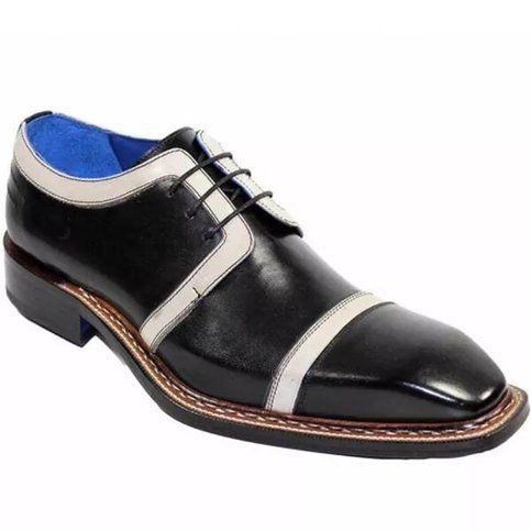 Handmade Men's Customized Black & White Leather Shoes Handcrafted Cap Toe Lace Up Spectator Real Leather
