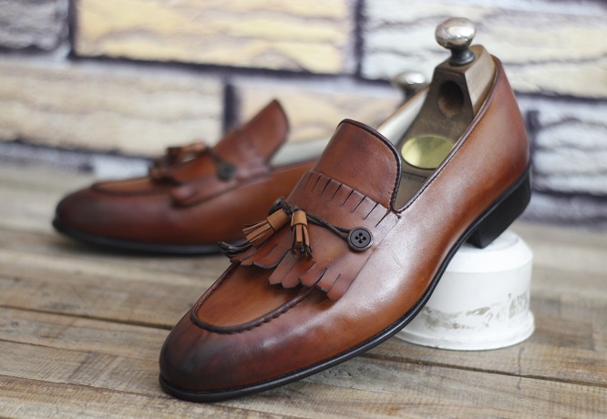 New Handmade Men's Brown Leather Slip On Teasels Bespoke Loafers Shoes