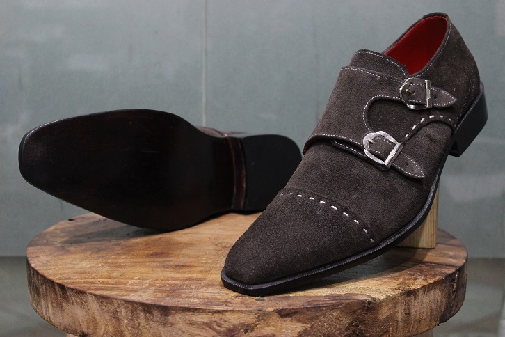 Mens New Handmade Formal Shoes Brown Suede Double Monk Cap Toe Casual Wear Shoes