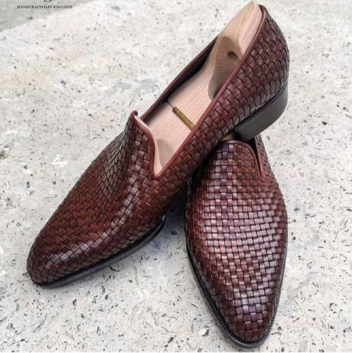 New Handmade Pure Brown Leather Stylish Loafer Slip On Shoes for Men's