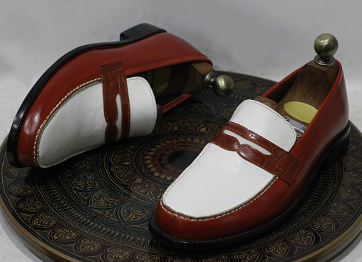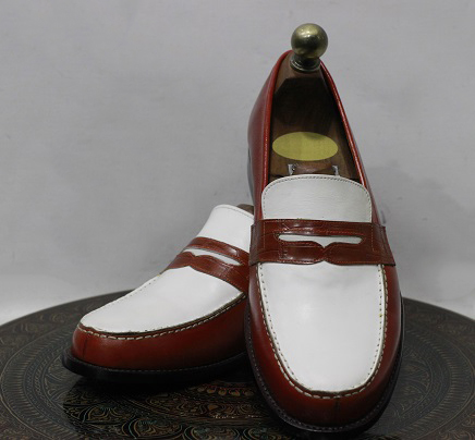 Men's Handmade Formal Leather Shoes Two Tone Brown & White Leather Loafers Stylish Slip On Moccasin Shoes