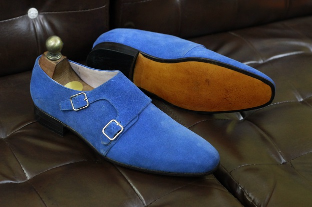 Men's New Handmade Leather Shoes Blue Suede Leather Double Monk Strap Dress & Formal Shoes