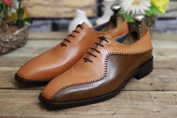 New Handmade Men's Two Tone Tan & Brown Leather Lace Up Stylish Dress & Formal Wear Shoes