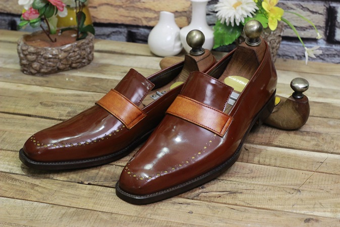 New Men's Handmade Leather Shoes Burgundy & Tan Leather Teasels Style Slip On Stylish Loafers Dress & Formal Wear Shoes