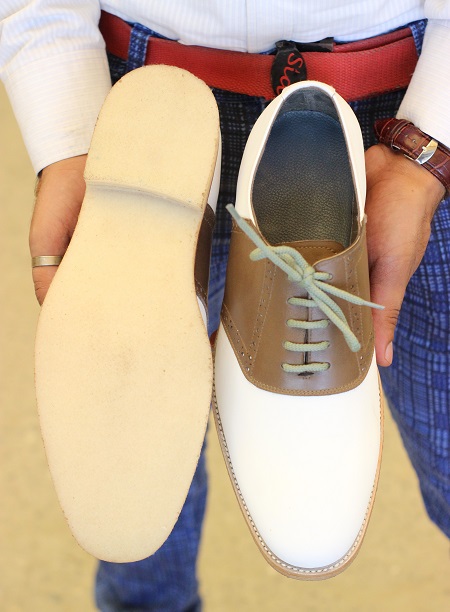 Men's Handmade Formal Shoes White & Olive Green Leather Lace Up Stylish Crepe Sole Dress & Casual Wear Shoes
