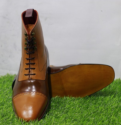 Men's Handmade leather Shoes Tan & Brown Leather Ankle High Boots