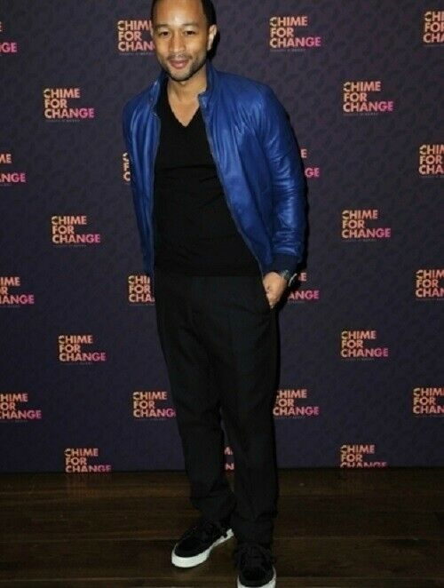 MEN LEATHER JACKET, JOHN LEGEND IN BLUE LEATHER JACKET