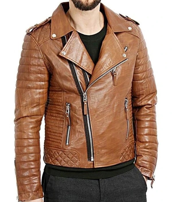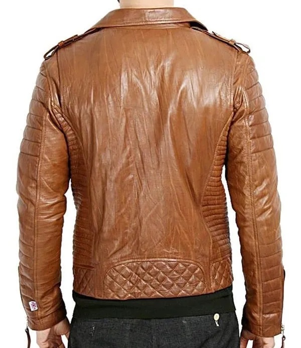 Men's Handmade Tan Leather Stylish Fashion Biker Leather Jacket