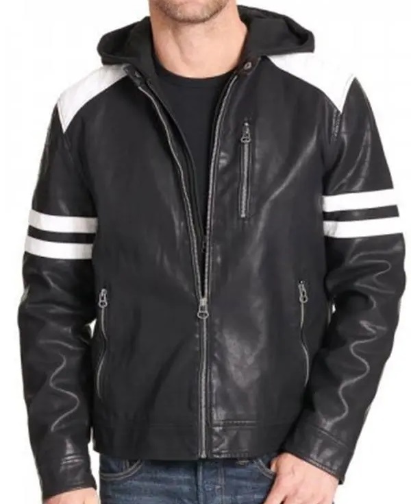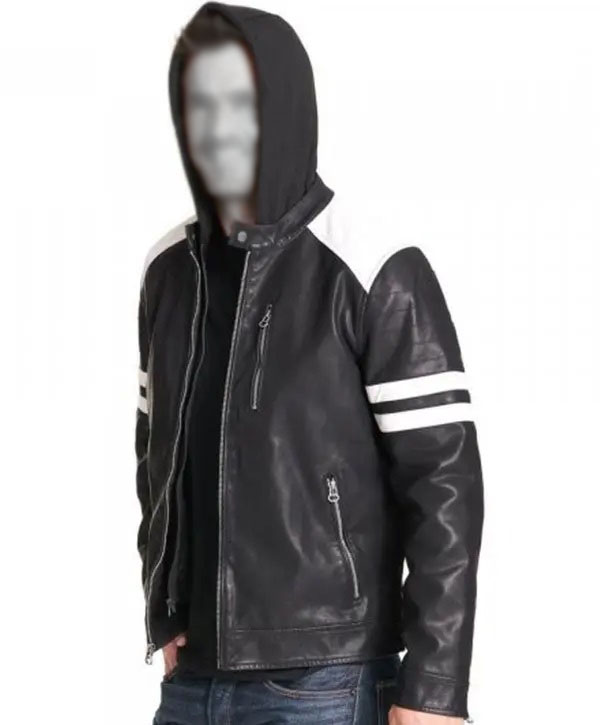 Men's Handmade Black Leather Motorcycle Style Fashion Jacket With Hoodie