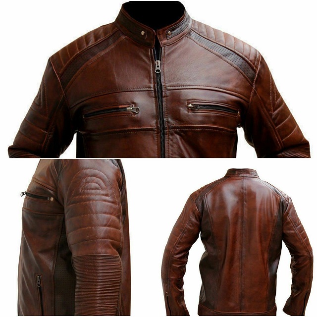 MENS REAL GENUINE LEATHER BIKER JACKET RACER VINTAGE STYLE BROWN FASHION LEATHER JACKET