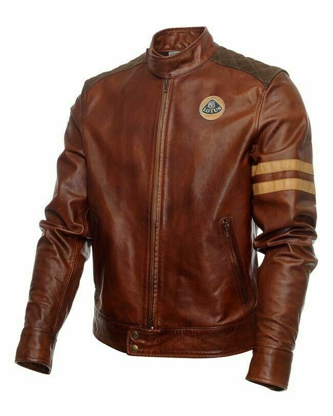 New Men's Custom Made Classic Lotus Biker Racing Brown Cowhide Leather Fashion Jacket