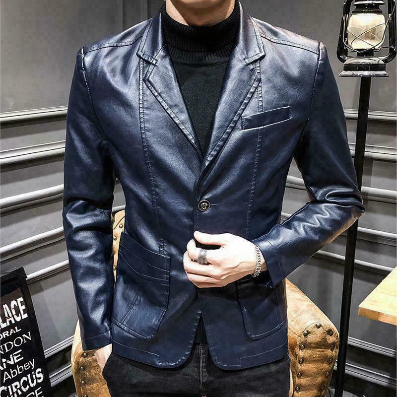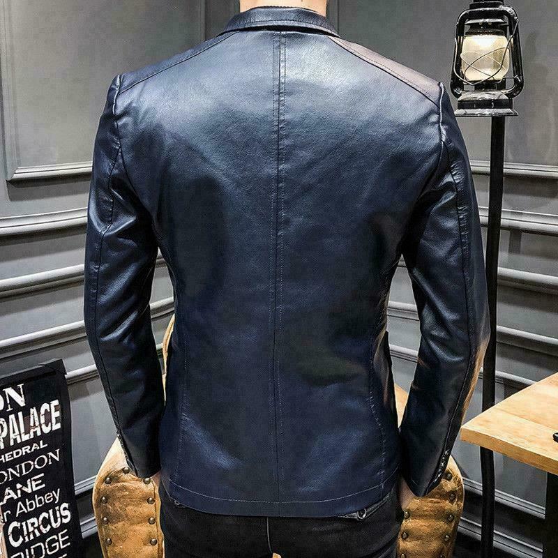 New Men's Stylish Handmade Navy Blue Leather Fashion Cowhide Leather Coat