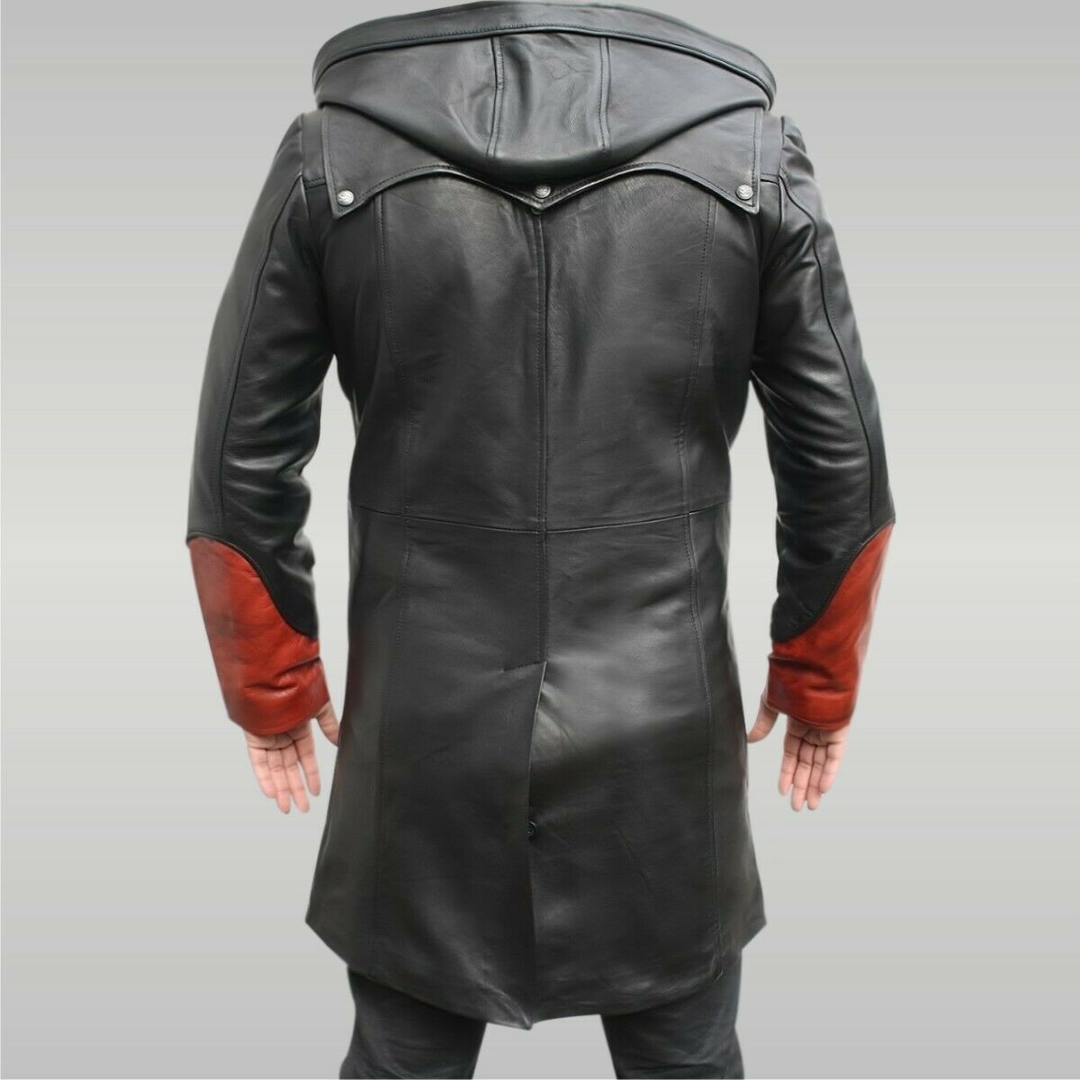 Men's New Custom Made Black & Red Leather Fashion Long Stylish Leather Coat