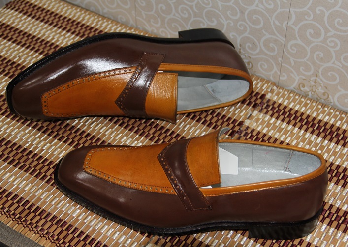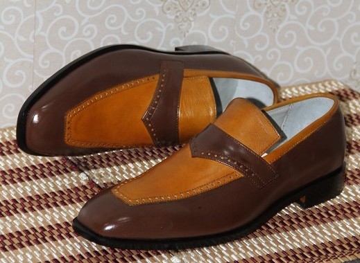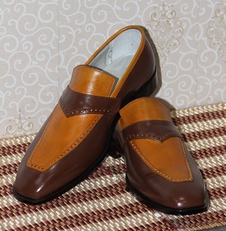 New Mens Handmade Shoes Leather Two Tone Tan & Brown Leather Loafers Slip-On Moccasins Formal Wear Boots