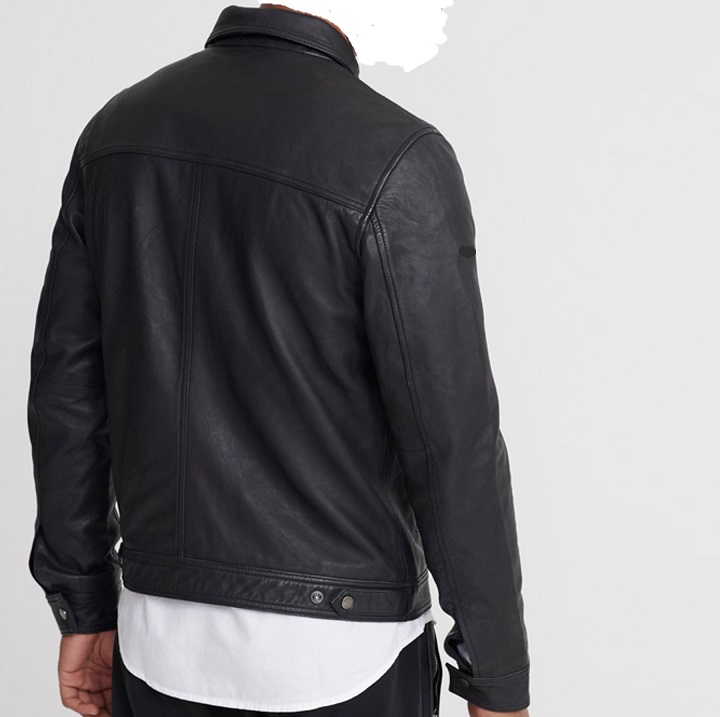 MEN'S HANDMADE BLACK Fashionable Leather Jacket